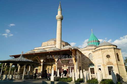 A l’invitation du Sultan Alâ-od-Dîn Kaykobâd Seldjukide, la famille arrive à Konya le 3 mai 1228. Le père de Rûmî, Bahâ-ud-Dîn Walad est un professeur et éminent théologien auquel le Sultan a offert un collège. Au décès de son père en 1230, Rûmî prend la relève. Un jour, un ancien disciple de son père, Burhân-ud-Dîn Tirmidhî, arrive et devient le maître spirituel de Rûmî pendant neuf ans. Il l’envoie étudier à Alep qui était alors un centre culturel florissant, puis Rûmî passa quatre années à Damas, une ville où se trouvait bon nombre d’érudits. A son retour à Konya, Rûmî, qui jouit d’une excellente réputation, enseigne à de nombreux disciples. Sa carrière de professeur semble toute tracée quand un événement vient ébranler sa vie.